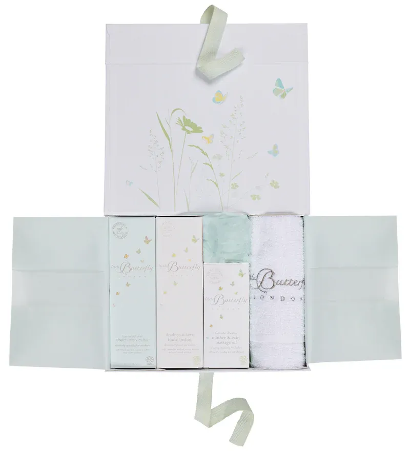 V dárkovém balíčku Pregnancy Pamper Kit najdeš tři pečující produkty, které doprovází celé těhotenství jemnou, hýčkající rutinou. Hedvábně lehký Fall Into Dreams Mother & Baby Massage Oil je ideální pro každodenní uklidňující masáž, zatímco výživné Dewdrops at Dawn Body Lotion dodává pokožce potřebnou hebkost a komfort. O cílenou péči během změn těla se stará bohaté máslo Cocoon of Bliss Stretch Mark Butter, které pomáhá udržet pokožku pružnou a vyživenou. Součástí je také měkká bavlněná žínka, která dotváří celý zážitek jemné péče.