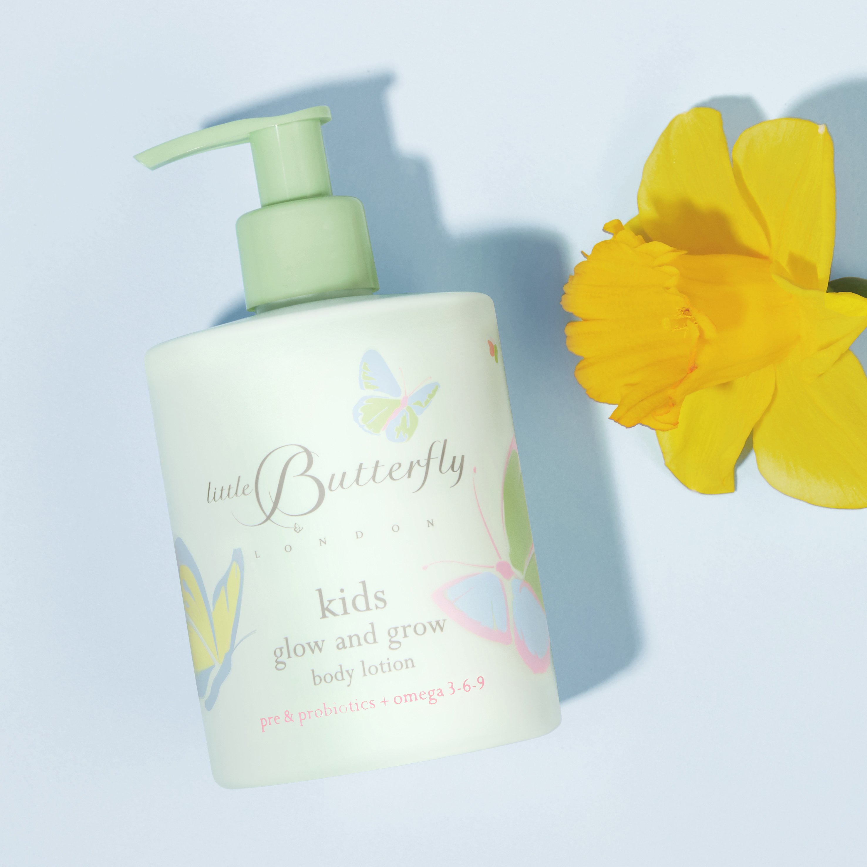 Tělové mléko „KIDS Glow and Grow Body Lotion“ je 100 % přírodní, veganské složení s certifikací COSMOS Organic, vyvinuté pro děti od 3 let, které rostou a objevují svět. Jeho jemná textura se snadno roztírá, má svěží ovocnou vůni a obsahuje aktivní složky, které podporují hydrataci a posílení kožní bariéry. Přírodní olej z lněných semen, kakaové máslo a bambucké máslo vyživují pokožku, výtažky z růžových šípků a maruly dodávají antioxidanty a podpoří zdravý vzhled pokožky, a přítomnost směsi pre- a probiotik pomáhá udržovat zdravý mikrobióm dětské pokožky. Jemně rostoucí bariéra pokožky je tak chráněna při každodenním používání.