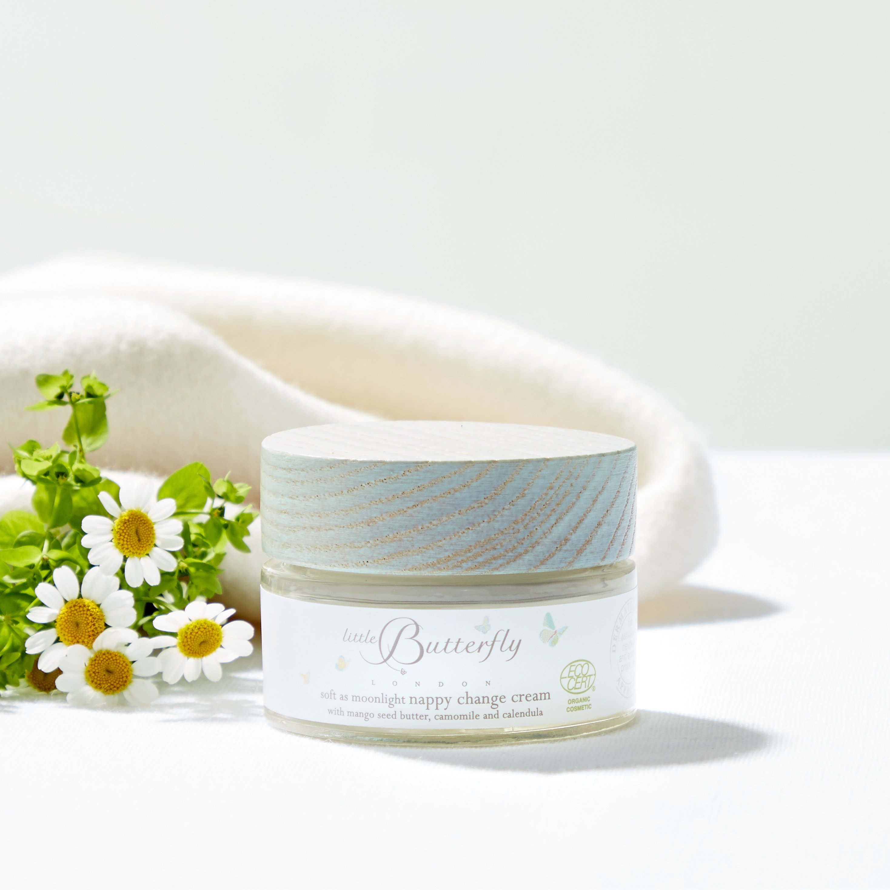 Objevte jemnou péči pro citlivou pokožku vašeho miminka – „Soft as Moonlight Nappy Change Cream“ kombinuje výživné másla, oleje a zinek pro ochranu, zklidnění a regeneraci při výměně pleny.