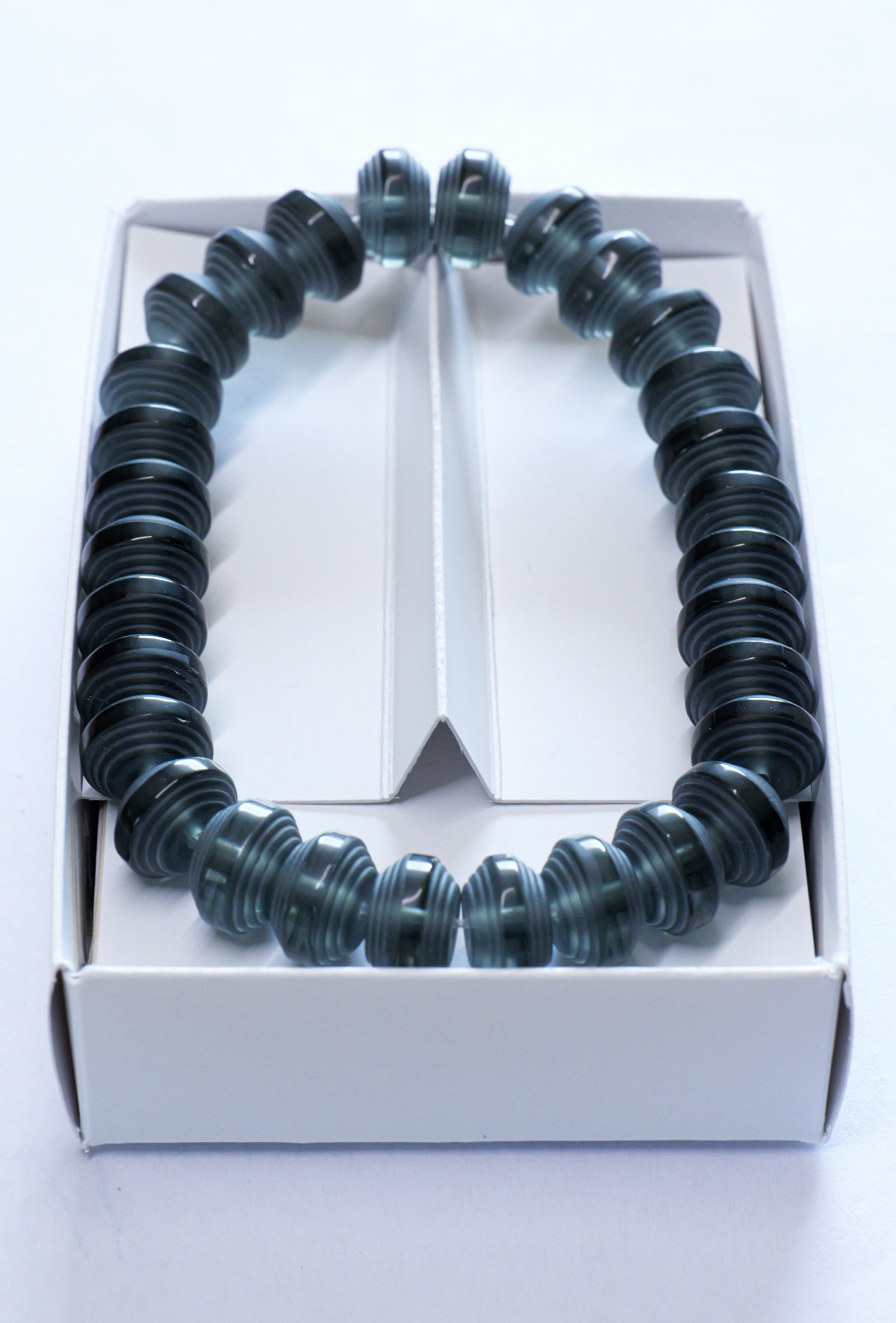 Materiálově je proveden z optického křišťálového skla, které dodává náramku estetickou čistotu a zároveň funguje jako médium pro harmonizační frekvence. Varianta černá je pro zápěstí do obvodu cca 19 cm, červená do cca 17 cm, což umožňuje pohodlné nošení a diskrétní vzhled. Náramek není potřeba běžně dobíjet či kalibrovat — je navržen jako praktický nástroj pro osobní podporu mimo prostor hlavního zařízení.